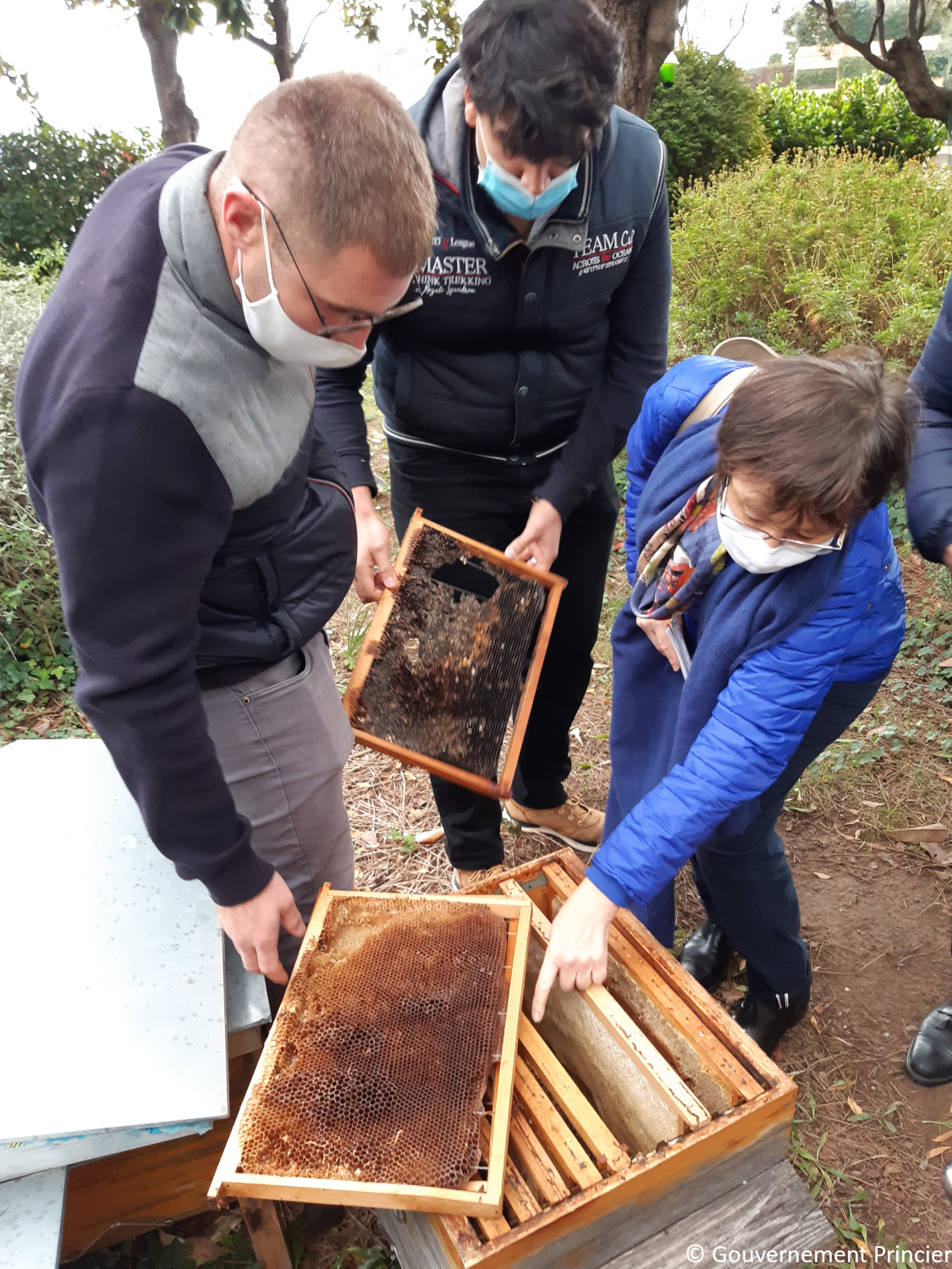 Les jardiniers de la Direction de l'Aménagement Urbain assurent le suivi des Ruches connectées de Monaco. Trois semaines après leur arrivée en Principauté, les abeilles se portent bien et ont pris leurs quartiers dans leur nouvel habitat.